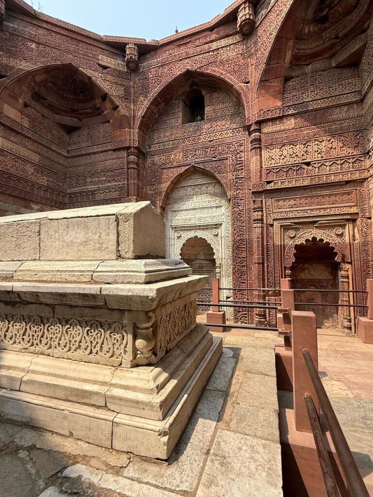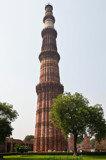 - Qûtb Minâr 🏛️+++ : Un site archéologique impressionnant avec un minaret de 72 mètres (le plus grand au monde), classé à l’UNESCO. Il est légèrement incliné pour résister à la force du vent.