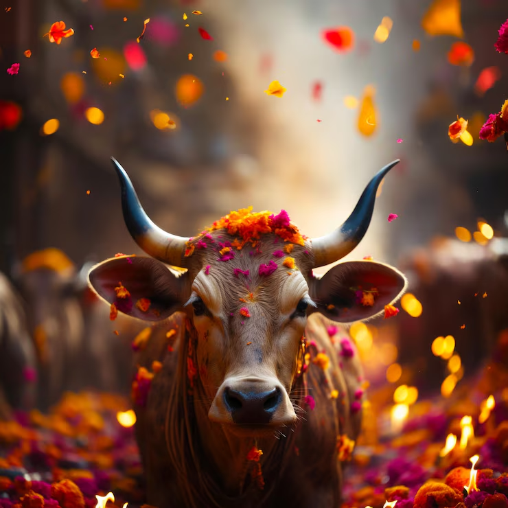 - Vous verrez de nombreuses vaches et taureaux (évitez de vous habiller en rouge héhé) dans les rues en Inde. Elles sont un symbole de non-violence, de générosité, de maternité (lait de vache pour nourrir les enfants), et de prospérité. Dans l’hindouisme, la vache est associée à plusieurs divinités et symboles sacrés : Krishna, l’une des figures majeures de l’hindouisme, a grandi comme jeune vacher (gopala) et est souvent représenté avec des vaches et Shiva, un autre dieu central, est souvent lié à Nandi, son taureau sacré.