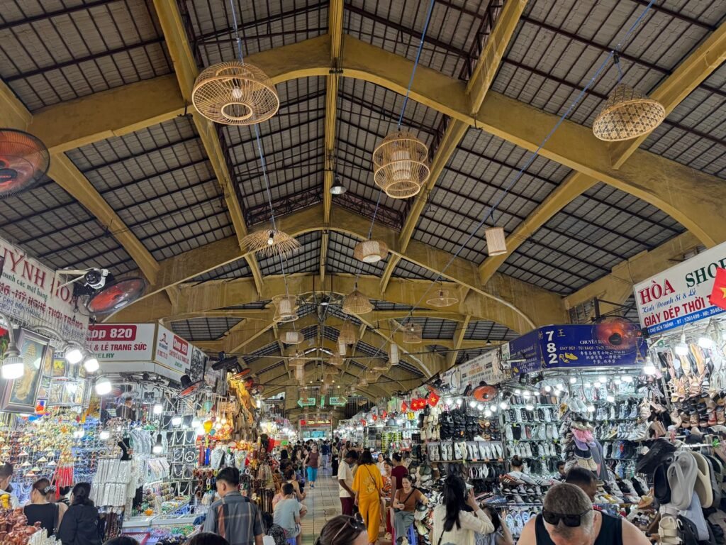 On commence par un passage obligé : le marché Ben Thanh, plus touristique mais incontournable pour faire le plein de souvenirs (attention au marchandage – 50% au moins !).