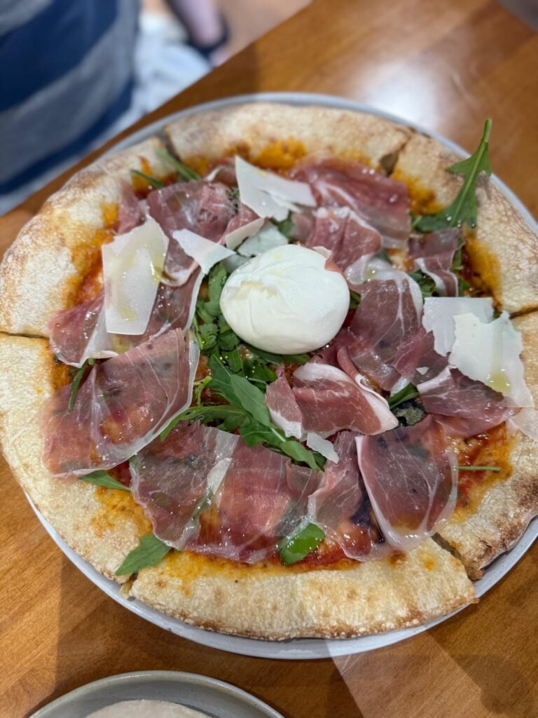 Excellente pizza tomate/Burrata/Jambon/roquette