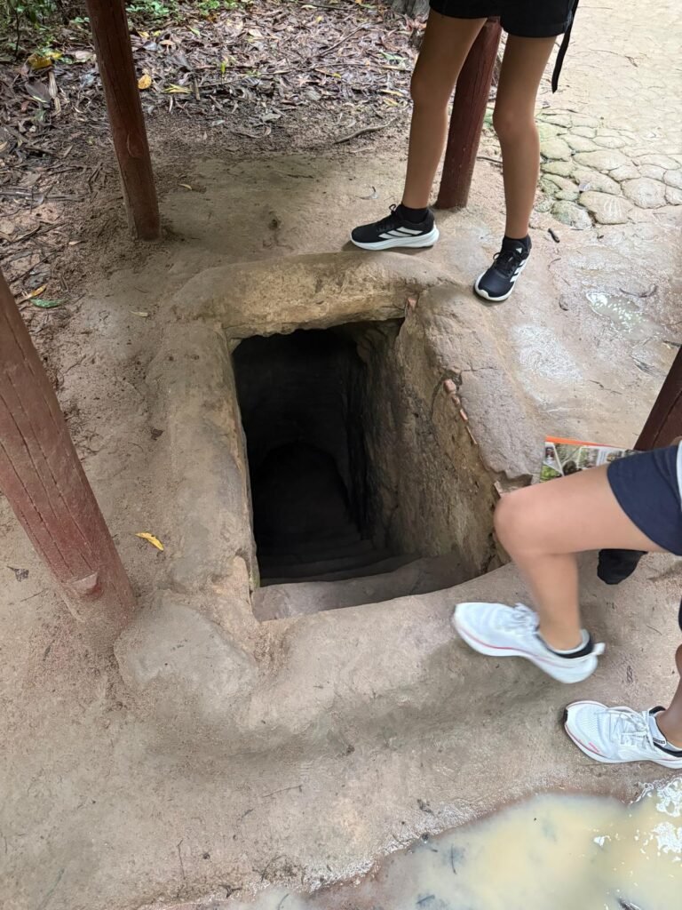 À 12h30, départ pour une excursion vers les célèbres Tunnels de Cu Chi. Ce réseau souterrain impressionnant (250km sur 3 niveaux – 10m de profondeur pour le dernier niveau), vestige de la guerre du Vietnam, témoigne de l’ingéniosité et de la résilience des combattants vietnamiens (20 ans de résistance). On peut même y ramper/se plier en 2 dans un tunnel (claustrophobes s’abstenir). Retour à Ho Chi Minh en début de soirée. Stand de tirs pour les amateurs. Réservation via klook (économisez 5 usd avec le code H96WV7). Visite environ 16 usd par personne pour une demi-journée.