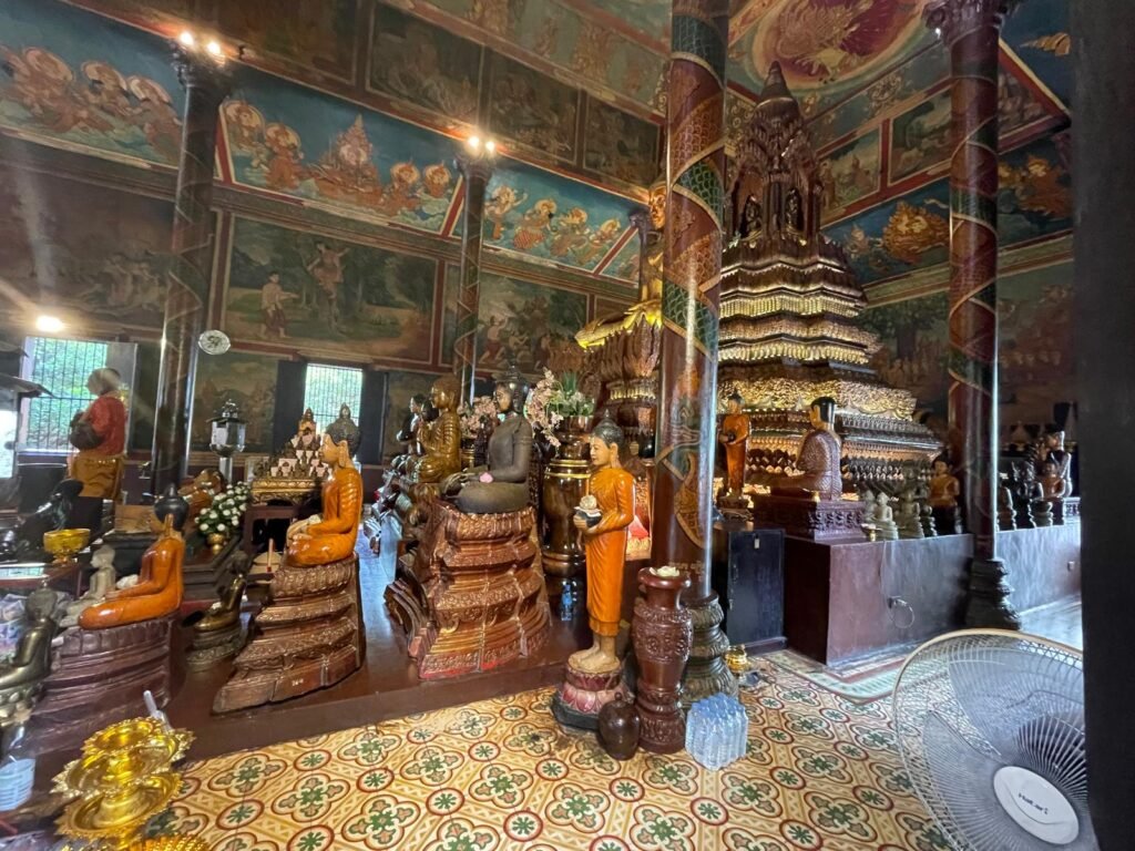 Cette pagode se trouve près des quais (riverside), du palais royal et du musée national cambodgien. Elle vaut le détour. Vous pouvez déjeuner dans la pizzeria Pizza 4Ps (pizzeria japonaise) juste à côté.