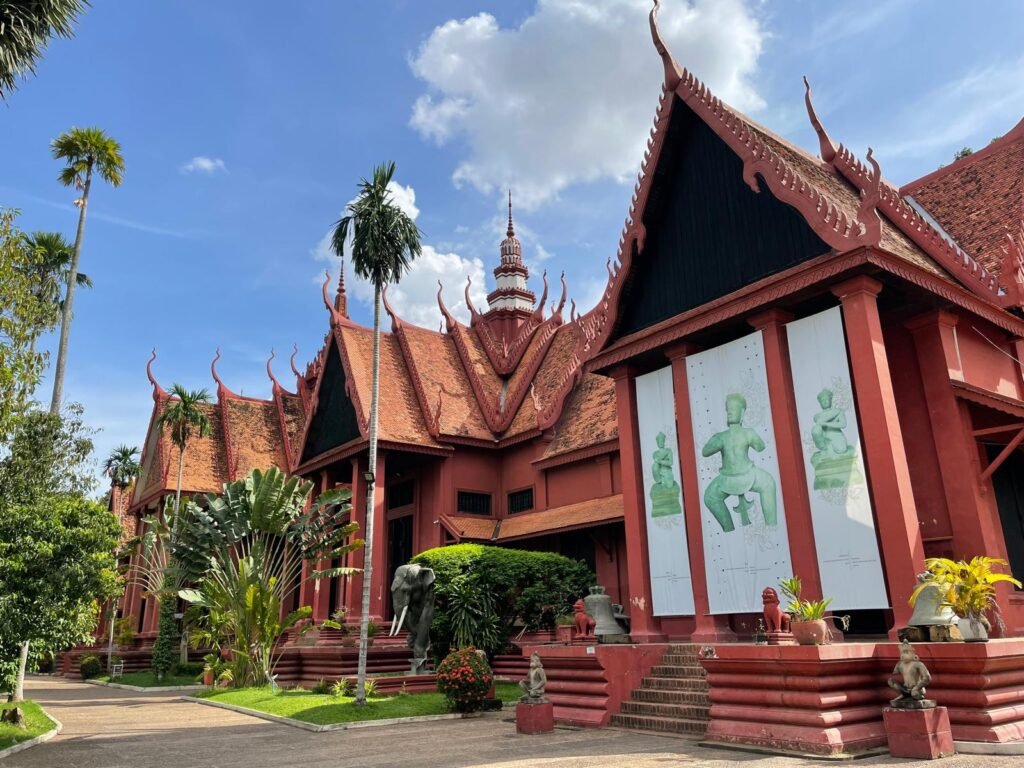 Le Musée National du Cambodge, reconnaissable à son architecture traditionnelle en terre cuite rouge, abrite l’une des plus riches collections d’art khmer au monde, allant de la préhistoire à l’époque post-angkorienne.