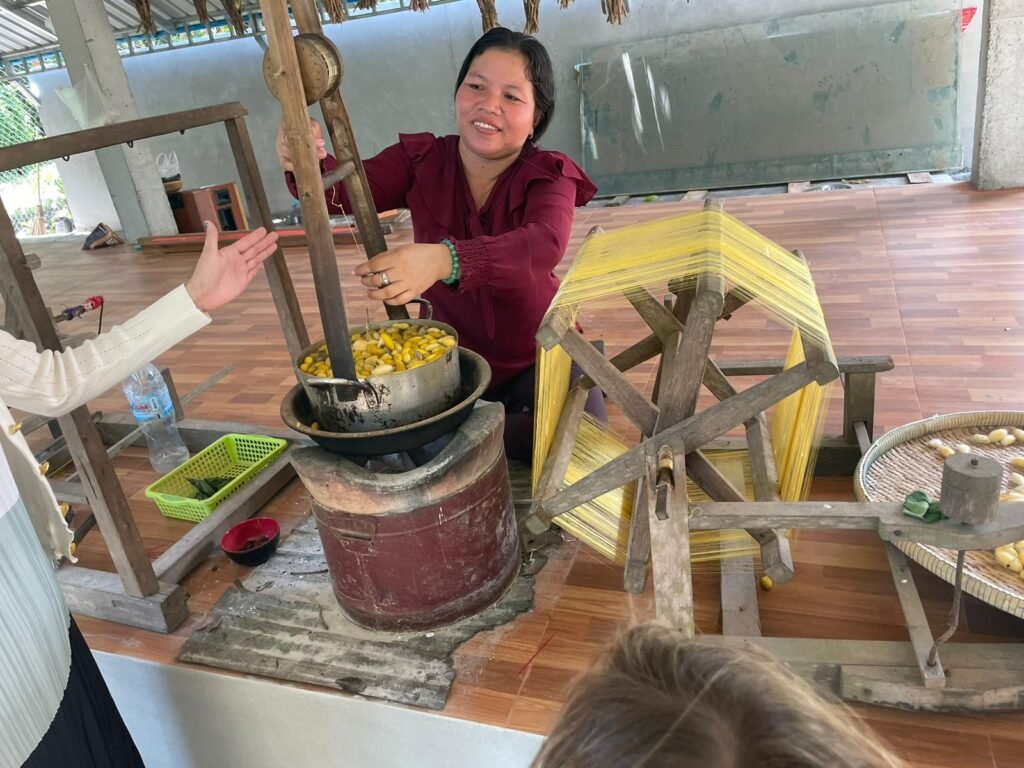 Vous trouverez de nombreux tuk-tuks devant le palais royal pour vous emmener sur cette île: visite du musée de la soie, achats directs de foulards en soie, passage du Tonlé Sap en bateau, … Cette visite est combinée avec le temple des singes et le temple doré. La visite dure au total 3-4h et est un incontournable selon moi.