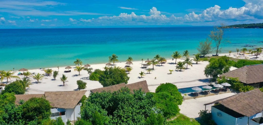 * Royal sands: C’est le resort le plus prestigieux de Koh Rong, offrant 67 villas spacieuses (souvent avec piscine privée) face à une plage de sable blanc immaculé de 550 mètres. Accessible en catamaran privé, l’hôtel garantit une isolation totale, des couchers de soleil spectaculaires et un service 5 étoiles entre jungle et eaux turquoise.