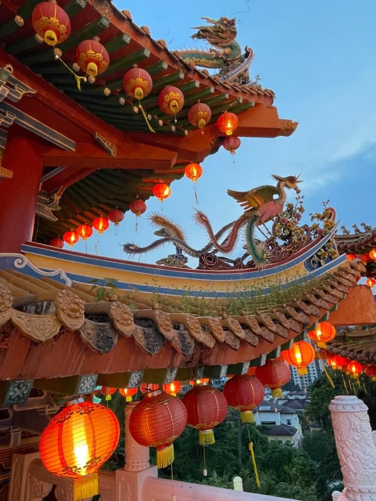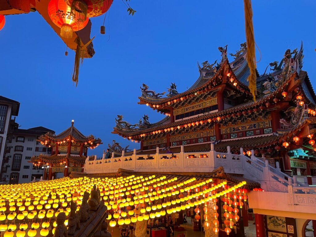Le temple Thean Hou, également connu sous le nom de Temple de la Déesse Tian Hou, est un temple taoïste situé sur une colline surplombant la ville de Kuala Lumpur. Le Temple Thean Hou présente une architecture traditionnelle chinoise avec des influences modernes. Il est célèbre pour son toit flamboyant à plusieurs niveaux orné de tuiles colorées, de dragons et de sculptures de phénix. L’architecture du temple est censée symboliser l’harmonie et l’unité entre les différentes cultures et religions de la Malaisie. Il faut le visiter le soir quand toutes les lanternes sont illuminées.