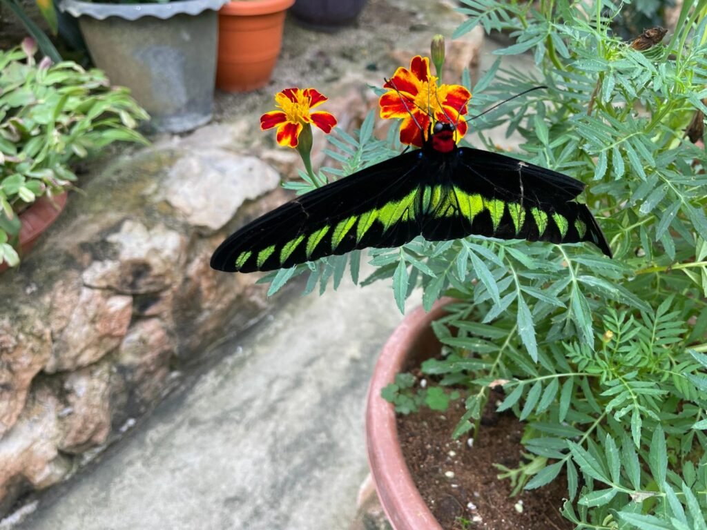 Visitez le Cameron Highlands Butterfly Garden pour observer une grande variété de papillons colorés dans un habitat naturel recréé. C’est une expérience fascinante pour les amoureux de la nature et les passionnés d’insectes. Le papillon noir avec du vert fluo sur les ailes est typiquement malaysien.