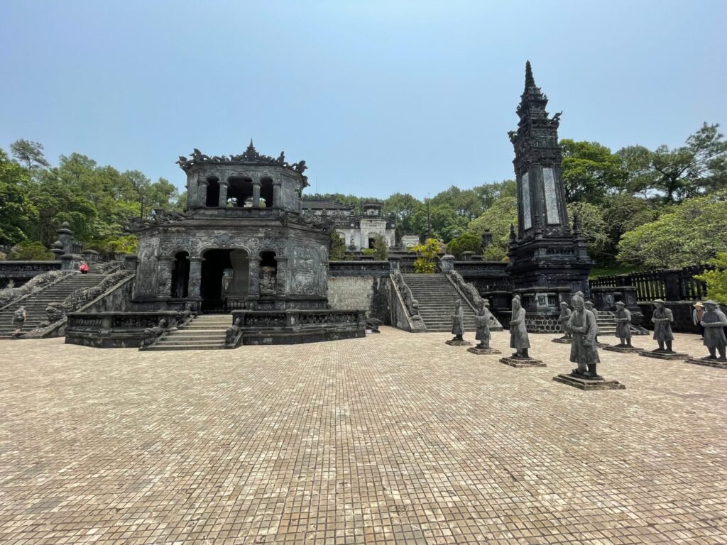 3. Les tombeaux royaux : Les environs de Hue abritent plusieurs tombeaux somptueux des empereurs de la dynastie Nguyen. Parmi les plus célèbres, on peut citer les tombes de Minh Mạng, Khải Định et Tu Duc, chacune avec son propre style architectural et ses jardins paisibles. Elles sont toutes facilement accessibles en taxi.