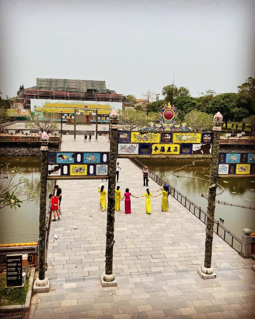 1. La Cité Impériale (Cité pourpre interdite) : Explorez cette vaste citadelle construite au début du XIXe siècle, qui servait de résidence aux empereurs de la dynastie Nguyen. La Cité Impériale est entourée de murs massifs et de douves, abritant des palais, des temples, des pavillons et des jardins pittoresques. Une visite virtuelle de la cité impériale d’autrefois de 15 minutes est possible au sein du parc. Ne manquez pas la boutique avec de nombreux produits d’artisanat local.