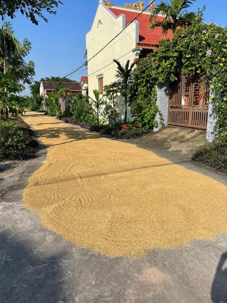 Séchage du riz dans ce village